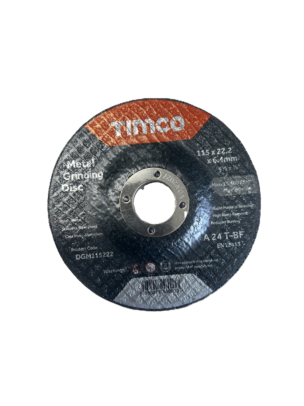 Timco Metal Grinding Disc 115mm x 22.2mm x 6.4mm (Pack Of 5)